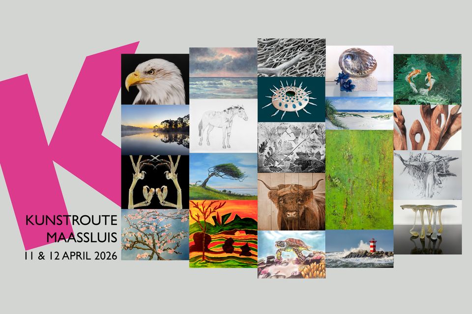 45 kunstenaars en kunstorganisaties tonen in het weekend van 11 en 12 april hun kunst tijdens de Kunstroute Maassluis. Dat doen zij op 11 locaties. Naast de ateliers in De Wasserij en De Drukkerij en locaties in de binnenstad vindt u opnieuw 21 kunstenaars in Loods M. Wat meer buiten de route - pak de fiets! - kunt u ook kunst kijken bij de Kunst- en Cultuur Academie (achter het stadhuis aan de kant van Aldi) en in Theater Koningshof.