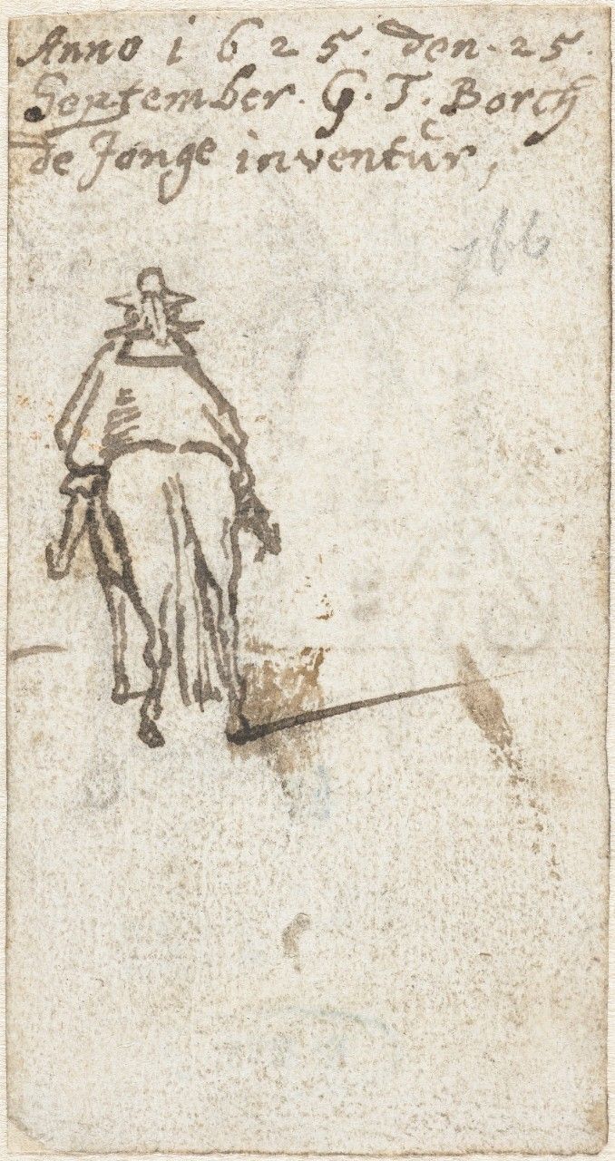 Op 25 september 1625 maakte de zevenjarige Gerard ter Borch de Jonge (1617-1681) een kleine tekening van een paard en ruiter. Met een paar trefzekere lijnen is deze tekening het startschot van een zeer succesvolle carrière als professioneel kunstenaar. Gerard zou bekend komen te staan om zijn manier van stoffen schilderen, maar ook om de uitdrukkingen van zijn personages.
