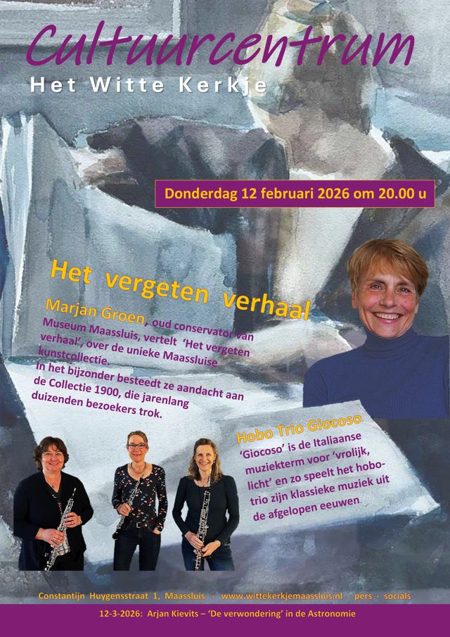 Cultuurcentrum Het Witte Kerkje presenteert de lezing: ‘Het vergeten verhaal’ over de Maassluise kunstcollectie. Oud-conservator van het Gemeentemuseum Maassluis Marjan Groen legt daarbij de nadruk op Collectie 1900.