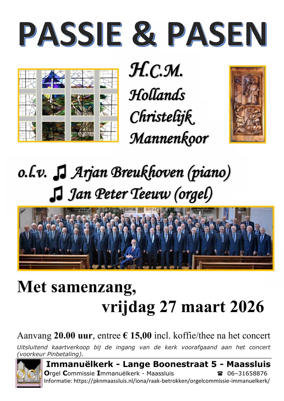 Onder leiding van Arjan Breukhoven met Jan Peter Teeuw; orgel en vleugel wordt het lijdensverhaal van Christus uitgevoerd door het: “Holland Christelijk mannenkoor”. In deze veertigdagentijd nemen zij u mee op de Kruisweg naar Golgotha en het open graf van Pasen.
