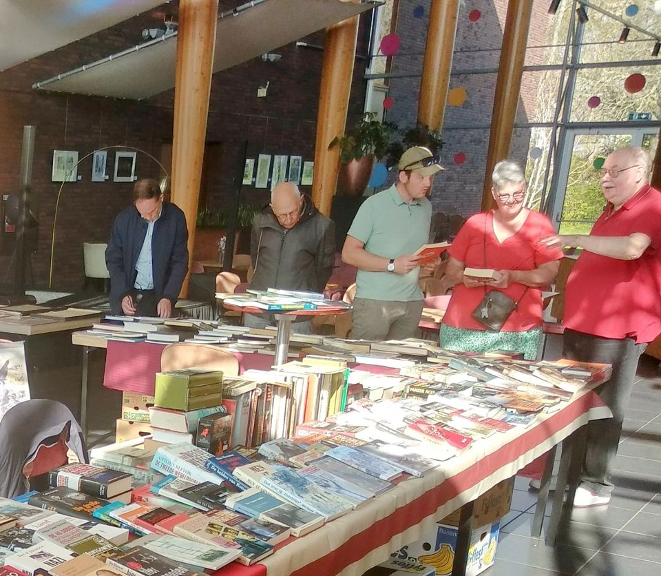 - Er zijn ruim 30 tafels met een aantrekkelijk aanbod van leden van de Documentatiegroep. Dit bestaat uit boeken, originele kranten, documenten over o.a. de illegale pers, foto’s, affiches uit de Tweede Wereldoorlog.